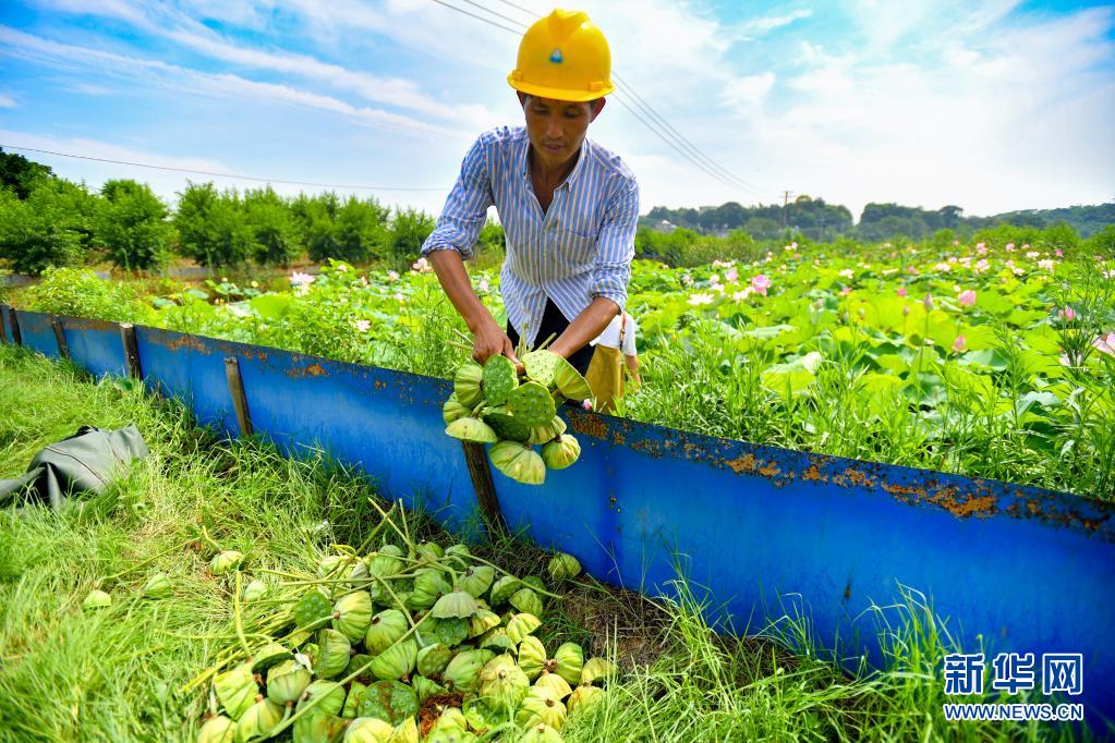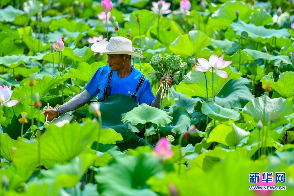 盛夏时节,湖南省湘潭市雨湖区姜畲镇联映村的莲蓬逐渐成熟,当地莲农忙着采摘莲蓬、荷花。近年来,当地大力发展“莲子经济”,特色产业带动村民增收致富。