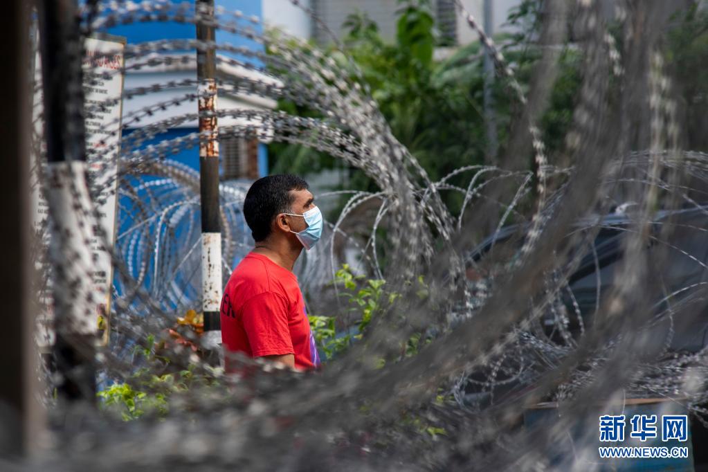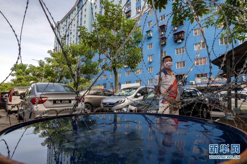 7月11日,在马来西亚吉隆坡郊区一个实行“加强行动管制令”的社区,一名居民隔着铁丝网向外张望。