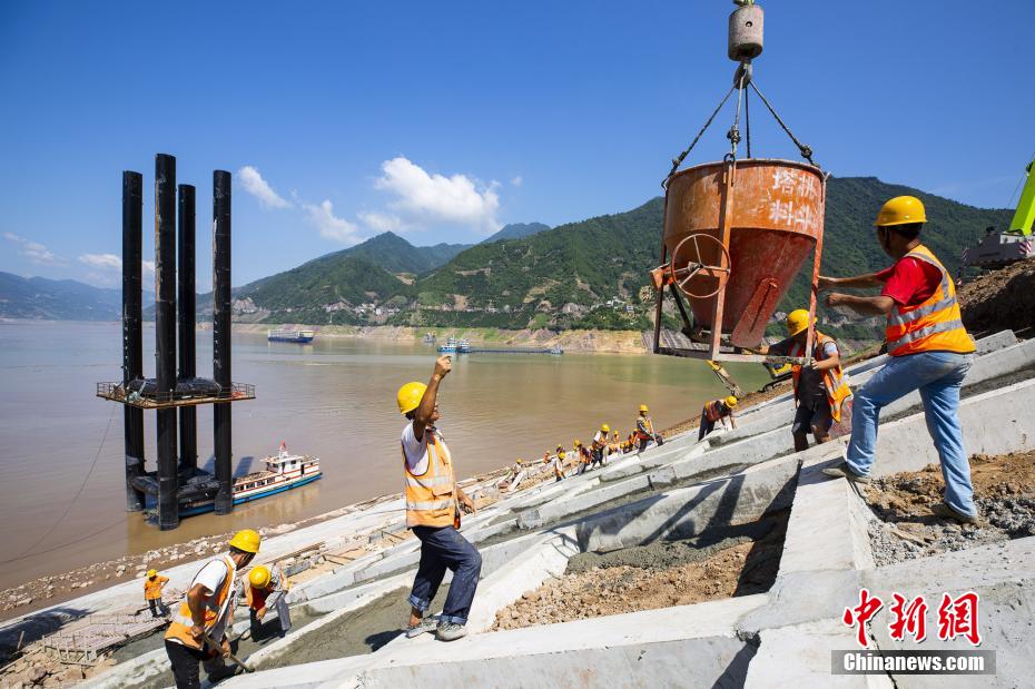 日前,长江上游来水平稳,三峡水库持续低水位运行。在湖北省宜昌市秭归县,三峡库区首个水运应用LNG(液化天然气)项目码头建设工地上,工人们抢抓三峡水库低水位运行的基础建设“窗口期”,开展低水位钢联撑吊装焊接作业,加快推进项目建设进度。该项目是交通运输部公布的水运行业应用液化天然气第二批试点示范项目之一,是落实长江大保护战略的重要举措。聂爽 摄