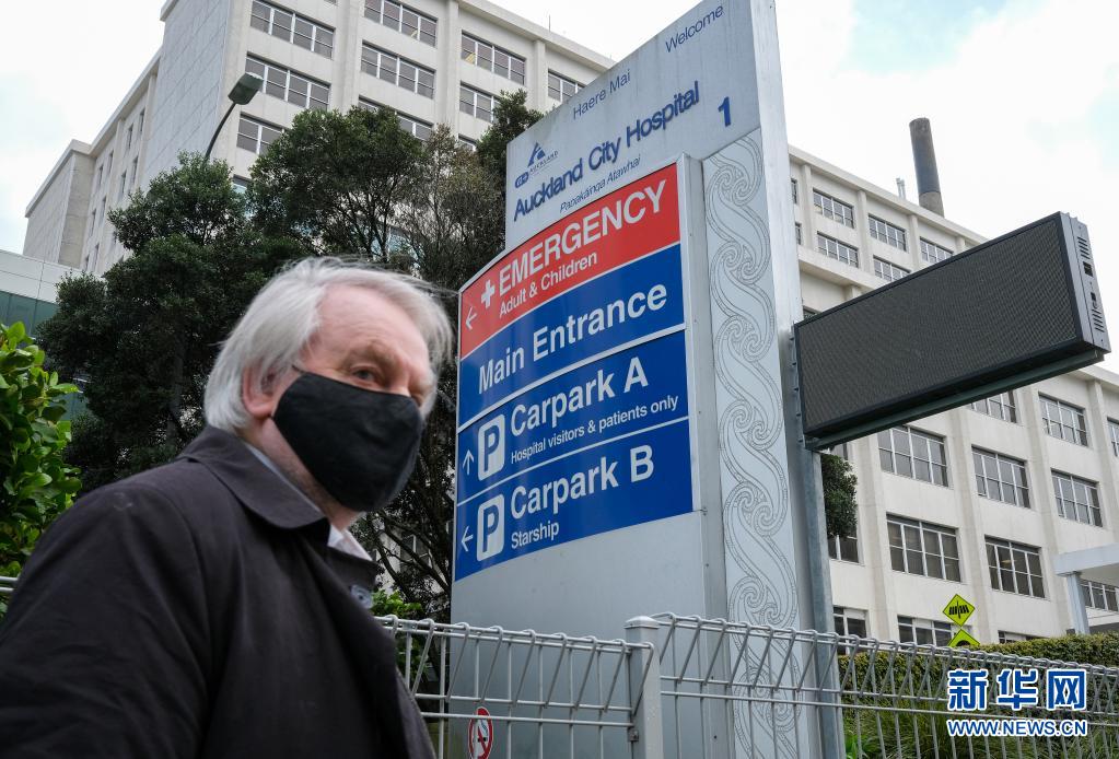 8月18日,一名戴着口罩的男子从新西兰奥克兰医院门前走过。该院一名已经接种疫苗的医务人员确诊感染德尔塔毒株。