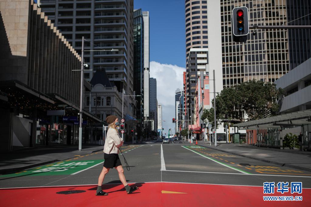 8月18日,一名戴着口罩的女子从新西兰奥克兰街头走过。