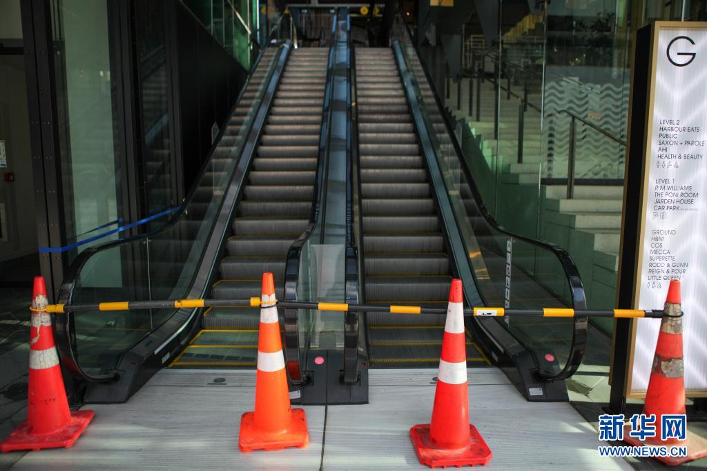 这是8月18日在新西兰奥克兰市中心停业的商业街拍摄的停运的电梯。