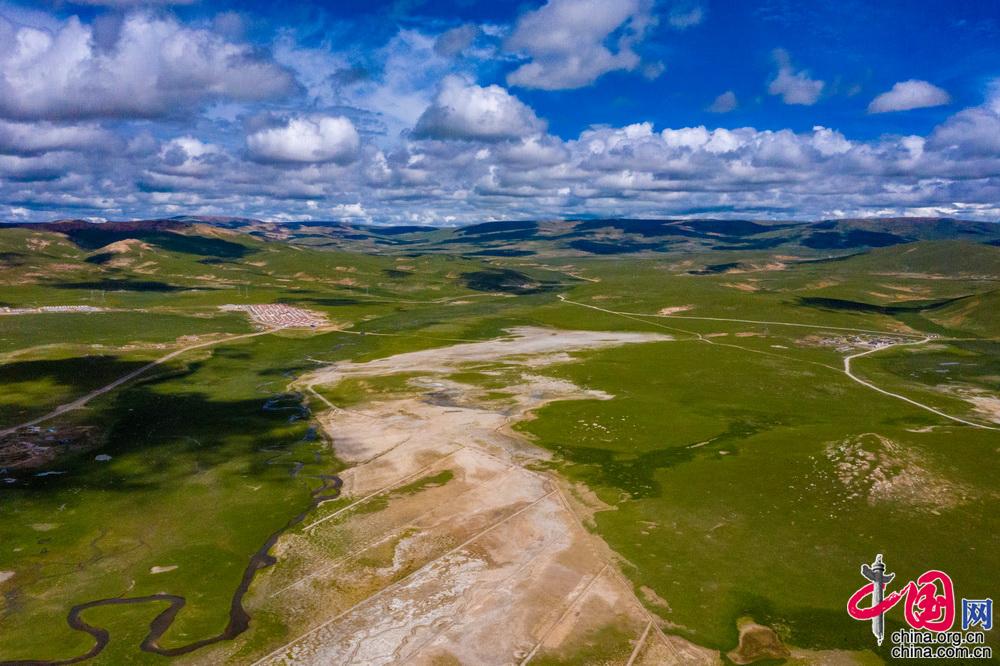航拍聂荣县城周边湿地风光。中国网记者 郑亮摄
