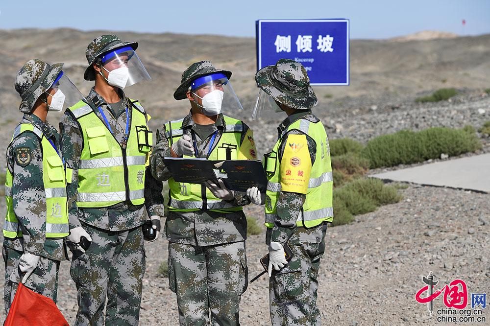 8月24日,“国际军事比赛-2021”中国库尔勒赛区“晴空”项目首场比赛技能赛在库尔勒开赛,边裁采集数据进行核实。张永进 摄