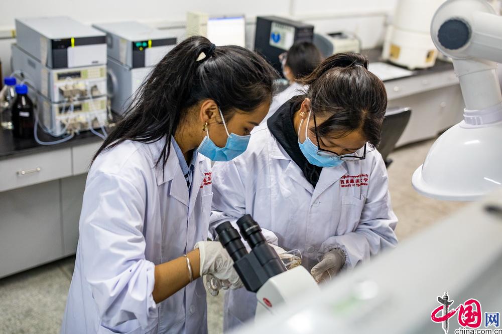 西藏藏医药大学目前拥有校内实训室24个、附属医院1家,校外藏药采认药实践实训基地2个、非直属附属医院2家、教学医院7家、实习医院11家、教学药厂2家、实习药厂1家,同时还拥有国家中医药管理局藏医药继续教育培训基地、中医药优势特色教育(藏药)培训基地和中央与地方共建藏医特色疗法实践基地等重要教学基地。图为学校学生在实验室中进行药物试验。中国网记者 郑亮摄