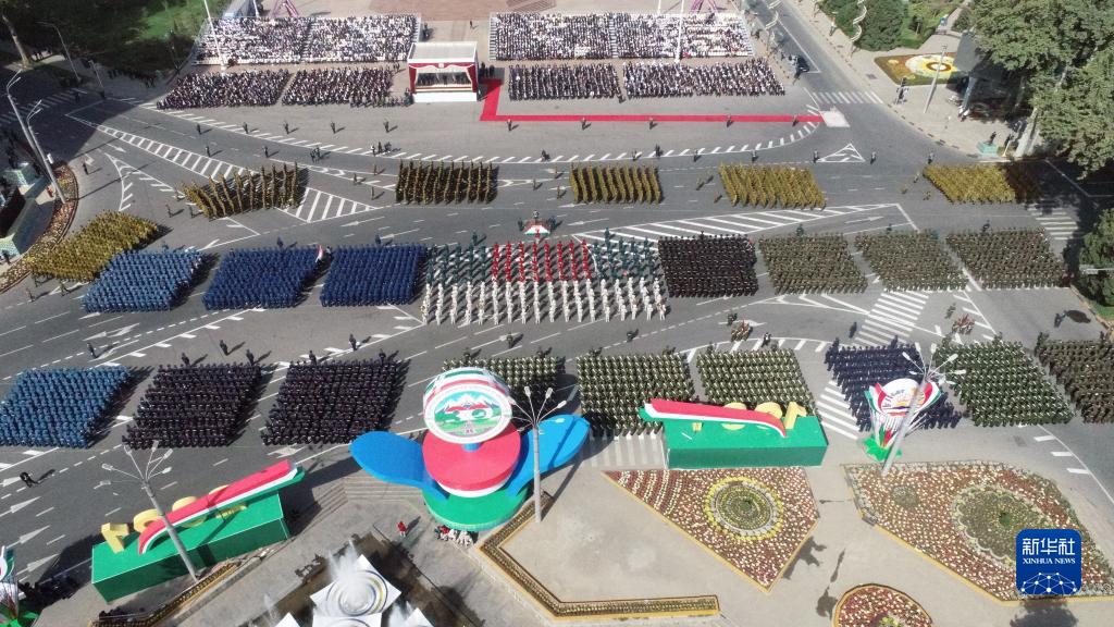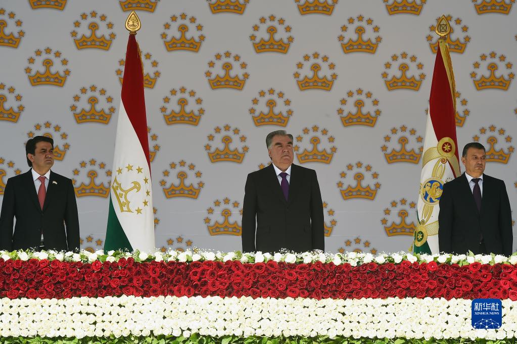 当日,塔吉克斯坦在全国多地举行盛大阅兵仪式,隆重庆祝国家独立30周年。新华社发(塔吉克斯坦总统府供图)