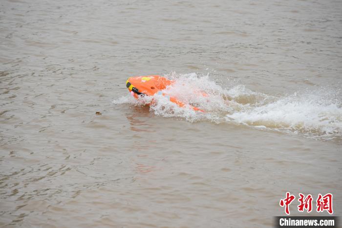 水上智能救生器参与营救水中的“被困者”。 何蓬磊 摄