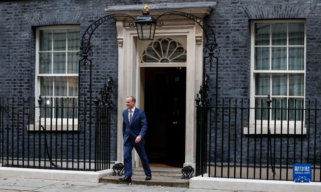 9月15日,新任命英国副首相兼司法大臣拉布离开英国伦敦的唐宁街10号首相府。