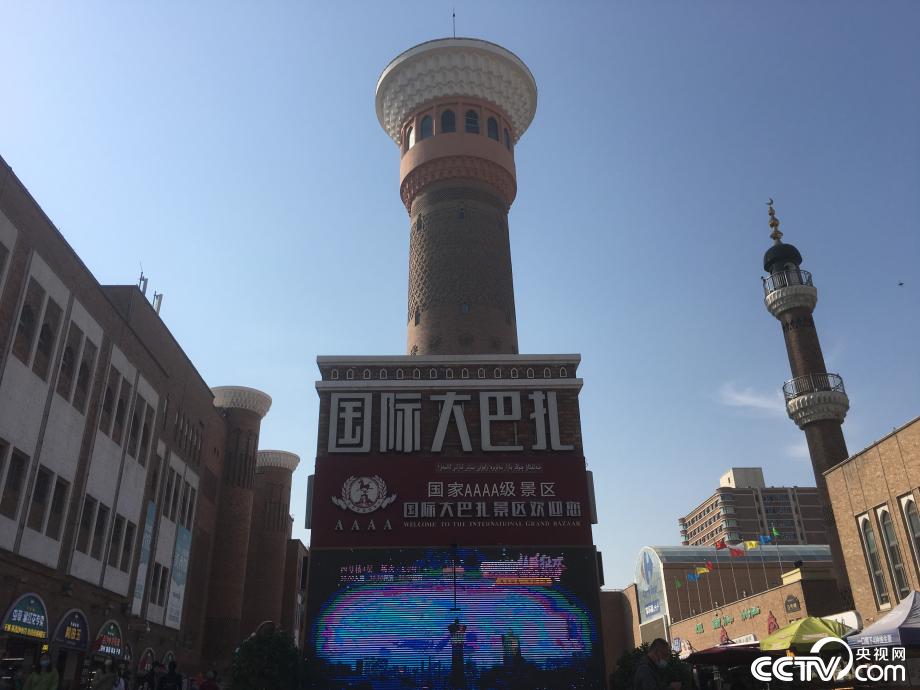 央视网消息(记者 王小英)坐落于乌鲁木齐市天山区的新疆国际大巴扎(维吾尔语,意为集市),是世界上规模最大的城堡式巴扎,也是新疆旅游业产品的汇集地和展示中心,这里商户林立、游人众多,是新疆经济社会发展的一个缩影,被称为“新疆之窗”。