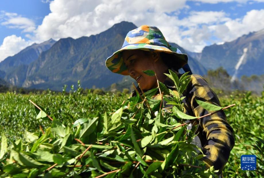 10月18日,易贡茶场职工在采茶。近期,西藏林芝市易贡茶场进入秋茶采摘季,茶园里一片繁忙景象。新华社记者 晋美多吉 摄