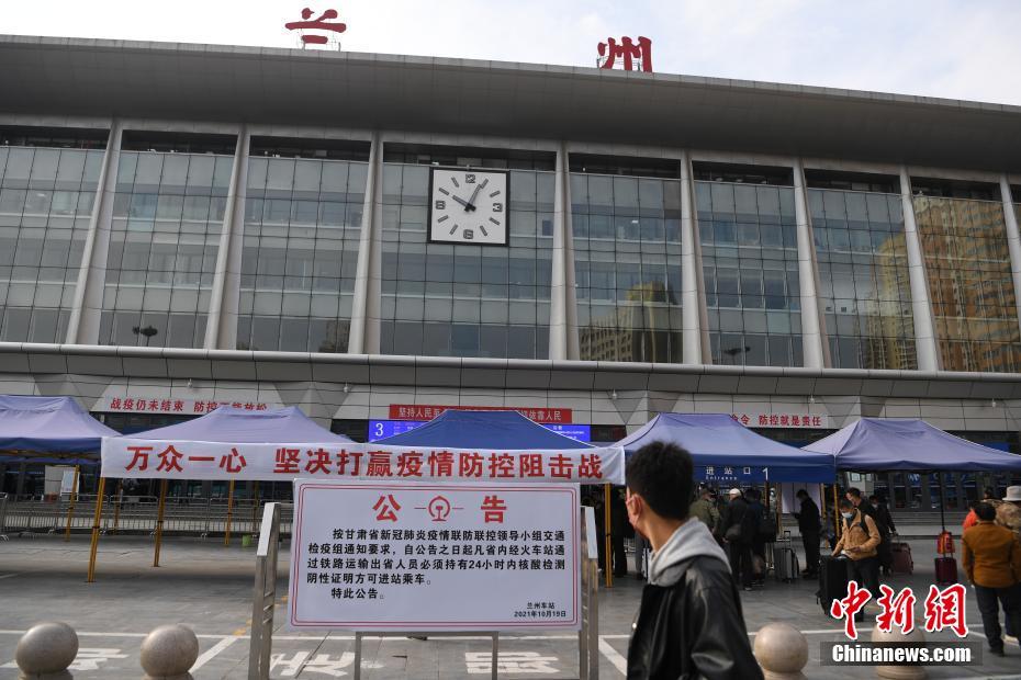 10月21日,旅客在兰州火车站出行。针对甘肃省兰州市发生的聚集性疫情,兰州火车站发布公告,按甘肃省新冠肺炎疫情联防联控领导小组交通检疫组通知要求,凡甘肃省内经火车站通过铁路运输出省人员必须持有24小时内核酸检测阴性证明方可进站乘车。 中新社记者 杨艳敏 摄