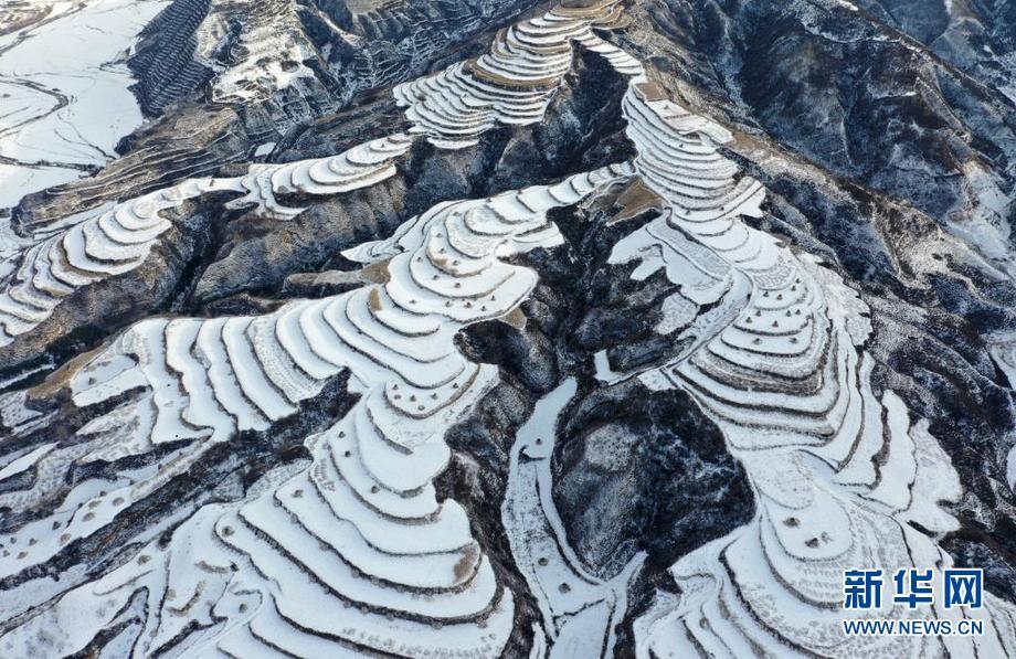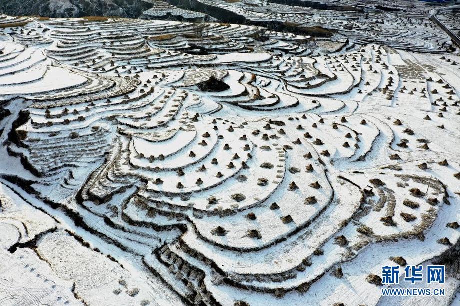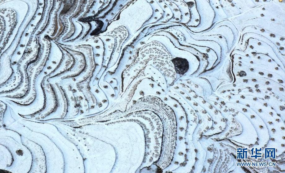 层层叠叠的梯田上铺满积雪。新华网 发(刘和平 摄)