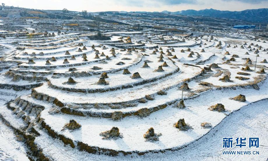 梯田银装素裹。新华网 发(刘和平 摄)