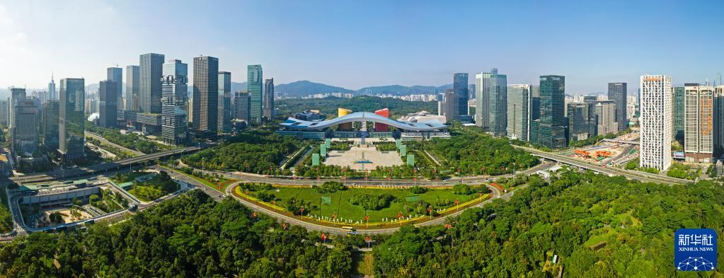 这是深圳市民中心和莲花山公园一线(2020年10月2日摄,无人机照片)。新华社记者 梁旭 摄