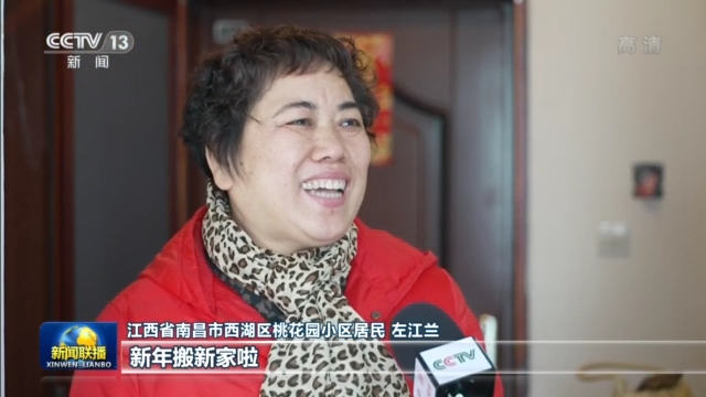 江西省南昌市西湖区桃花园小区居民 左江兰:新年搬新家啦,你看我们现在房子真的好舒服,而且我们上下电梯,旁边周边的设施也好,风景又好,我们在这里幸福满满的。