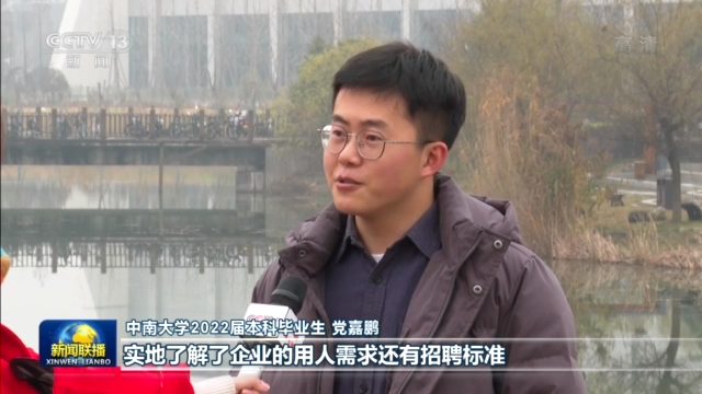 中南大学2022届本科毕业生 党嘉鹏:课程内容特别丰富,学校还带我们走进了企业,实地了解企业的用人需求还有招聘标准。我现在已经签约了一家企业,今后我想在自己的岗位上努力奋斗。