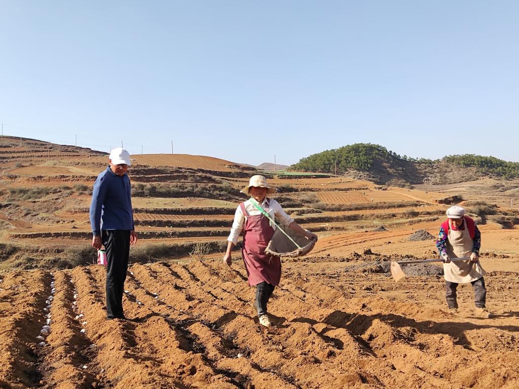 “农业技术指导人员教得很仔细,怎么放种、施肥、挖沟这些,我们都听得懂,遇到不会的随时可以问。”张兴彩说,这些天,她和60岁的村民张碧翠一组,两人合作每天可以播种1亩多马铃薯。