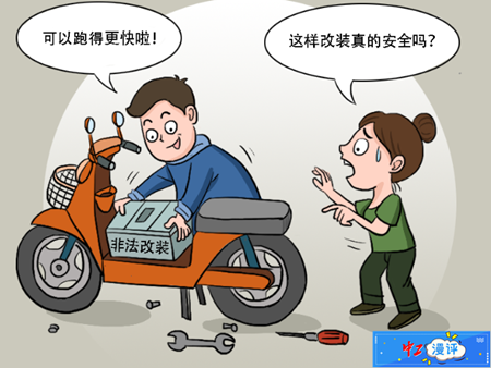 近年来,超标电动车引起的交通及火灾事故频发。为了提升速度,违法者私自改装电动车,且私自加装的电池大多没有品牌和参数,外观粗糙、质量堪忧。面对各地居高不下的电动自行车改装比例,除了要提高公众的守法意识和安全意识,更要加大查处力度,从生产、上牌、上路及回收实施“全生命周期”闭环监管,打散非法改装电动车的灰色产业链。同时要按照“新国标”要求对车辆进行分级处理,不为非法改装留“后门”,才能让“生死时速”不再上演,避免因超速造成终生遗憾。