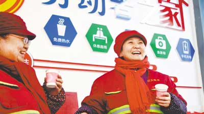 安徽阜阳“爱心驿站”温暖户外劳动者