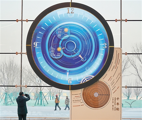 旅客在京雄城际雄安站内拍摄“千年轮”。新华社记者 牟 宇摄