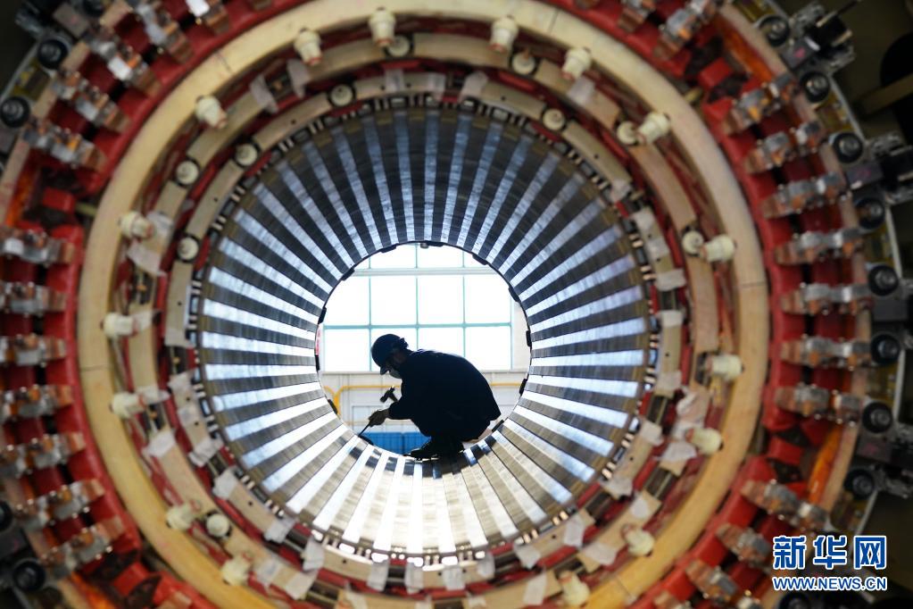 工人在哈电集团哈尔滨电机厂有限责任公司生产车间作业(2020年2月25日摄)。新华社记者 王建威 摄