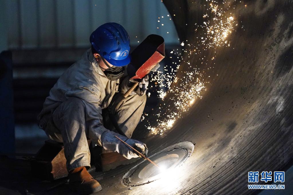 工人在哈电集团哈尔滨锅炉厂有限责任公司生产车间作业(2月23日摄)。新华社记者 王建威 摄