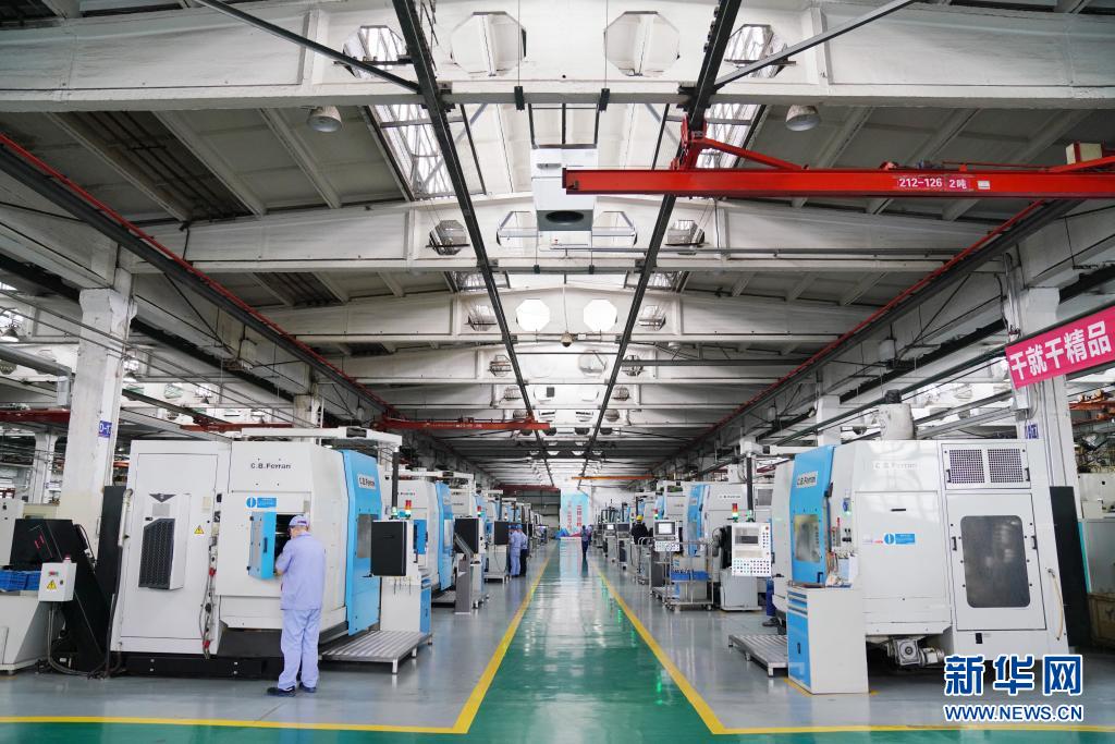 这是哈电集团哈尔滨汽轮机厂有限责任公司生产车间(5月15日摄)。新华社记者 王建威 摄