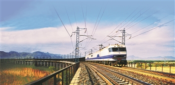 我国第一条开行重载单元列车的双线电气化铁路——大秦线。