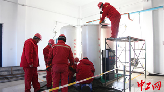 制氮机碳分子筛作为制氮机的“心脏”,使用寿命每年以5%的产能递减,因此制氮机使用时间过长,碳分子筛的质量就会变差,产出的氮气纯度就会低下,这时便需要更换碳分子筛,恢复氮气浓度。在南堡联合站生产场区,员工们分工明确,有的拆下吸附塔封头,有的拆下制氮机管道,有的铲出塔内废料……历经两天,他们完成了制氮机碳分子筛的更换工作。(中国石油冀东油田油气集输公司 高雲 康莉)