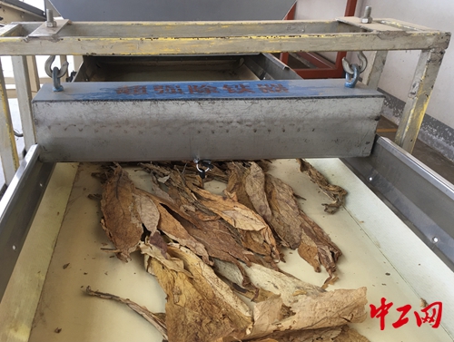 由于碎料分选皮带所筛分的烟叶是人工分选台漏下的碎料,里面经常混入一些铁屑或解包时使用的断刀片等,这些碎小金属件进入到烘烤车间将会造成设备的损害,带来财产损失。云南烟叶复烤有限责任公司泸西复烤厂仓储分选车间员工经过多次试验,在皮带上制作安装了永磁除铁器,它可以把混合在碎料中的铁磁杂质去除,以确保传送系统、破碎机、研磨机等机械和设备的安全工作,对提高生产效率起到了至关重要的作用。(云南烟叶复烤有限责任公司泸西复烤厂 马玉祥 卢瑾)