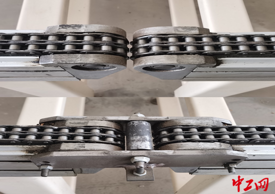 针对这一问题,云南烟叶复烤有限责任公司泸西复烤厂技术人员对设备进行了改进:在连接处两侧增加钢板对两个链条轨道进行固定,并在中间部位增加滑轮。改进之后,经检测,烟叶框栏在经过两个链条轨道之间时可以平滑过渡,降低了噪音,减小了连廊输送链条的磨损,延长了机器设备的使用寿命。(云南烟叶复烤有限责任公司 普正斌)