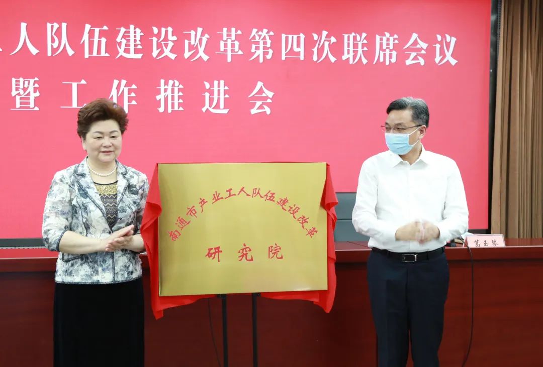 5月19日,江苏省南通市产业工人队伍建设改革研究院成立。南通市委常委、组织部部长、市产改联席会议召集人封春晴,市人大常委会副主任、市总工会主席、市产改联席会议副召集人葛玉琴为研究院揭牌。