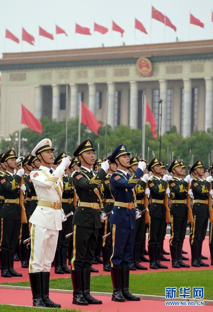 7月1日上午,庆祝中国共产党成立100周年大会在北京天安门广场隆重举行。这是国旗护卫队准备升旗。