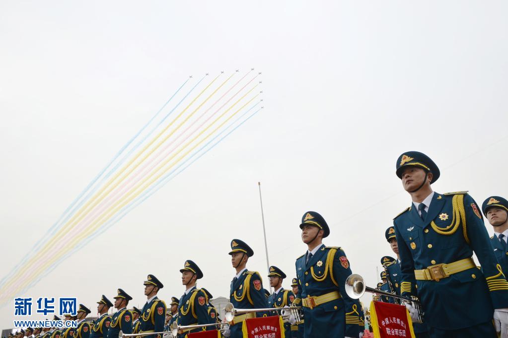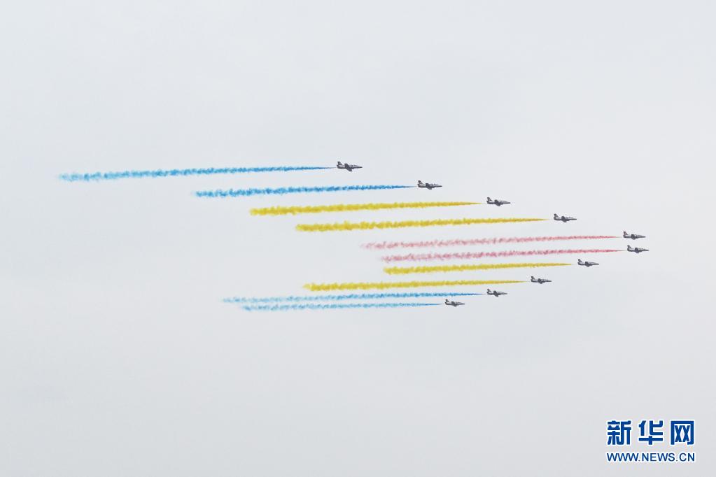 7月1日上午,庆祝中国共产党成立100周年大会在北京天安门广场隆重举行。这是庆祝活动前的飞行庆祝表演。