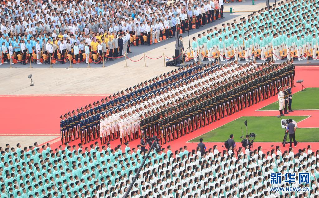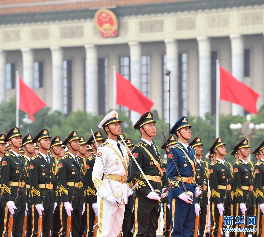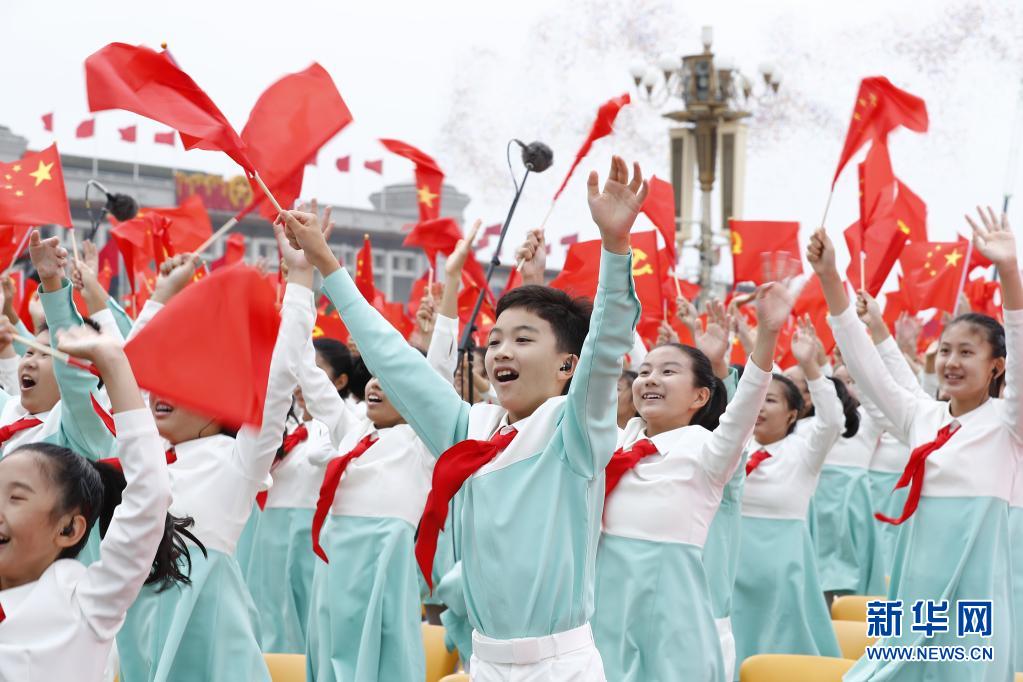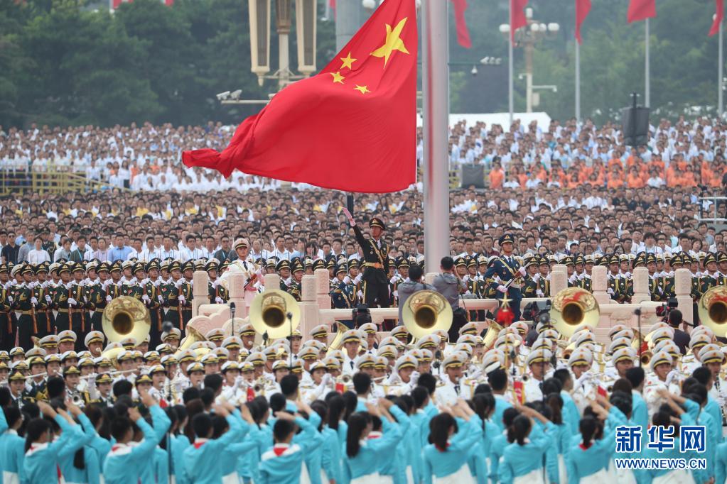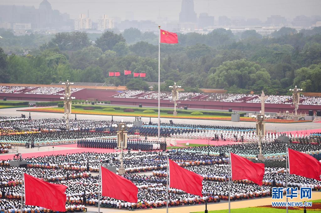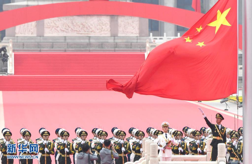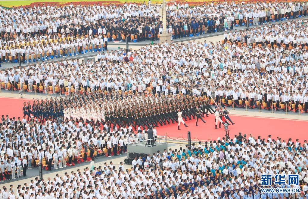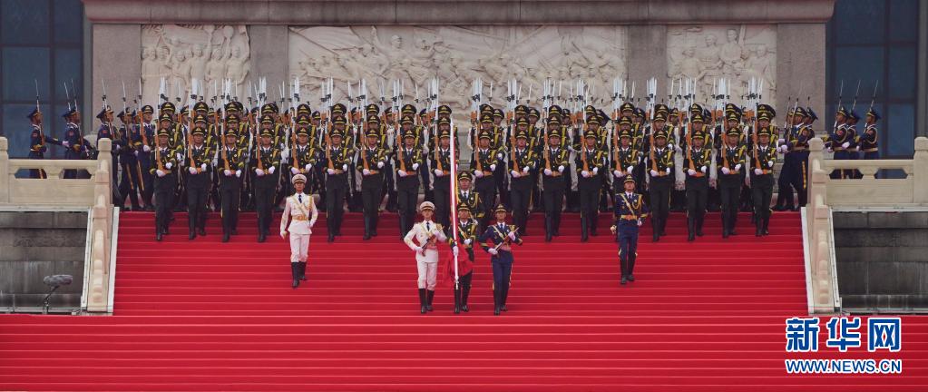 7月1日上午,庆祝中国共产党成立100周年大会在北京天安门广场隆重举行。这是升国旗仪式。