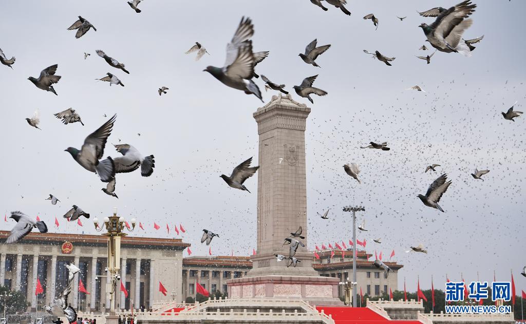 7月1日上午,庆祝中国共产党成立100周年大会在北京天安门广场隆重举行。这是庆祝大会现场和平鸽展翅高飞。