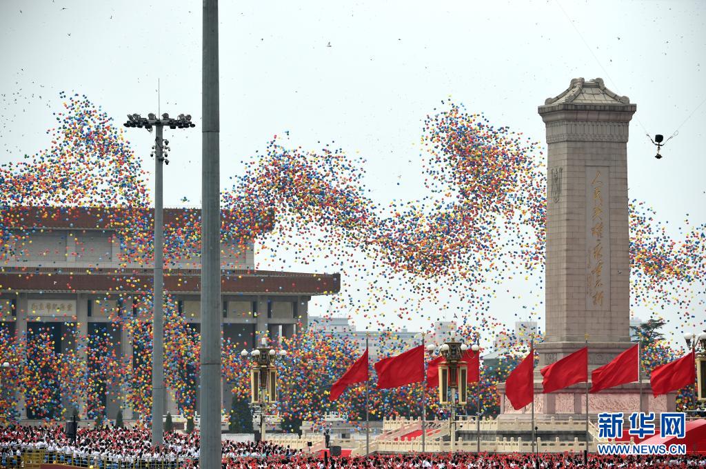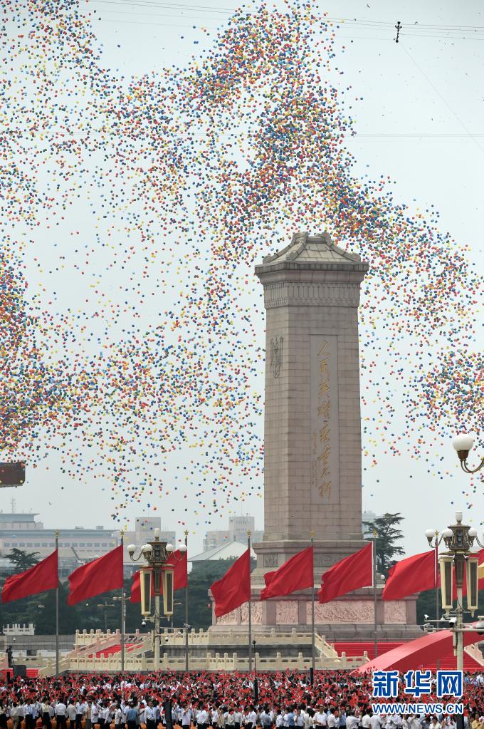 7月1日上午,庆祝中国共产党成立100周年大会在北京天安门广场隆重举行。这是庆祝大会现场气球腾空而起。