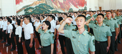 新党员在展览馆宣誓。张 立摄(人民视觉)