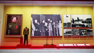 “中华人民共和国中央人民政府今天成立了!”展览现场,循环播放的开国大典彩色录像,让人心潮澎湃。