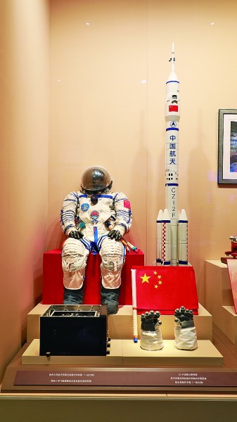 “不忘初心、牢记使命”中国共产党历史展览中展出的神舟九号航天员穿过的舱内宇航服。光明日报记者 姜奕名摄/光明图片