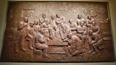 这是广大农民欢欣鼓舞的春天。山西农民开着拖拉机欢欣鼓舞,“三中全会好”的标语让人感慨万千。一处浮雕上,人人神情严肃。1978年冬,安徽凤阳小岗村18位农民按下红手印、实行“大包干”,拉开农村改革的序幕。