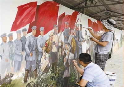 7月1日,在湖南资兴州门司镇塘家湾村,画家以湘南起义为素材,创作红色文化长廊。李 科摄(人民视觉)
