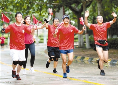 7月1日,陕西中医药大学师生进行7.1公里接力跑,庆祝中国共产党成立100周年。张 远摄(影像中国)