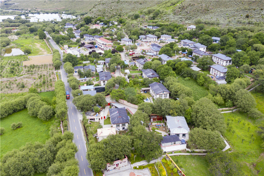 俯瞰林芝市巴宜区林芝镇嘎拉村(7月21日摄,无人机照片)。新华社记者 普布扎西 摄