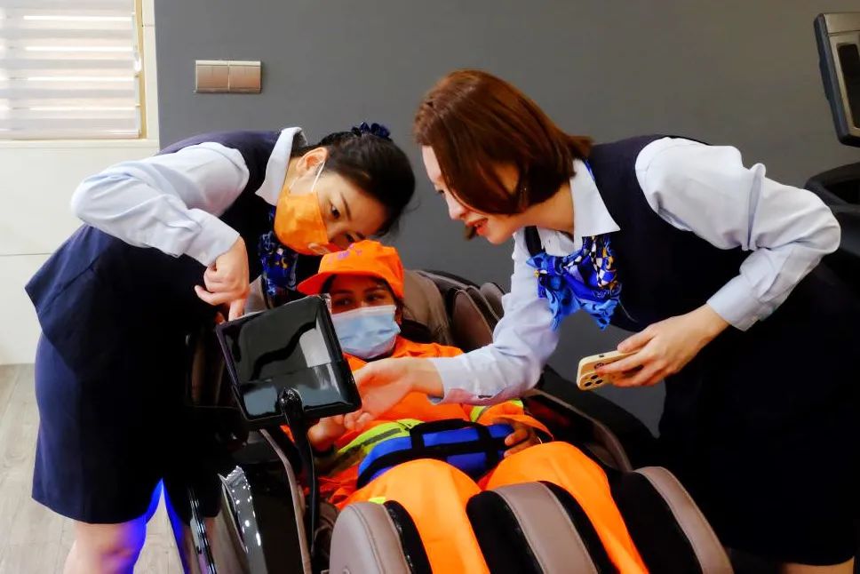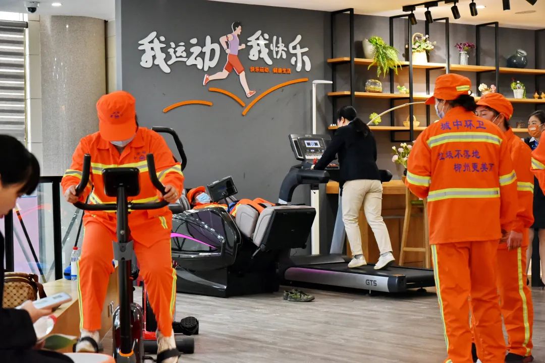 启动仪式后,30多名户外女性劳动者参观了建行柳州河东支行“劳动者港湾”,体验了休息、运动、饮水设施设备。