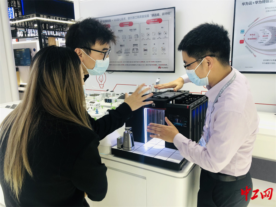 工作人员正在给观众介绍和演示新型智能集中供电控制系统的模型 中工网记者 王天玥摄