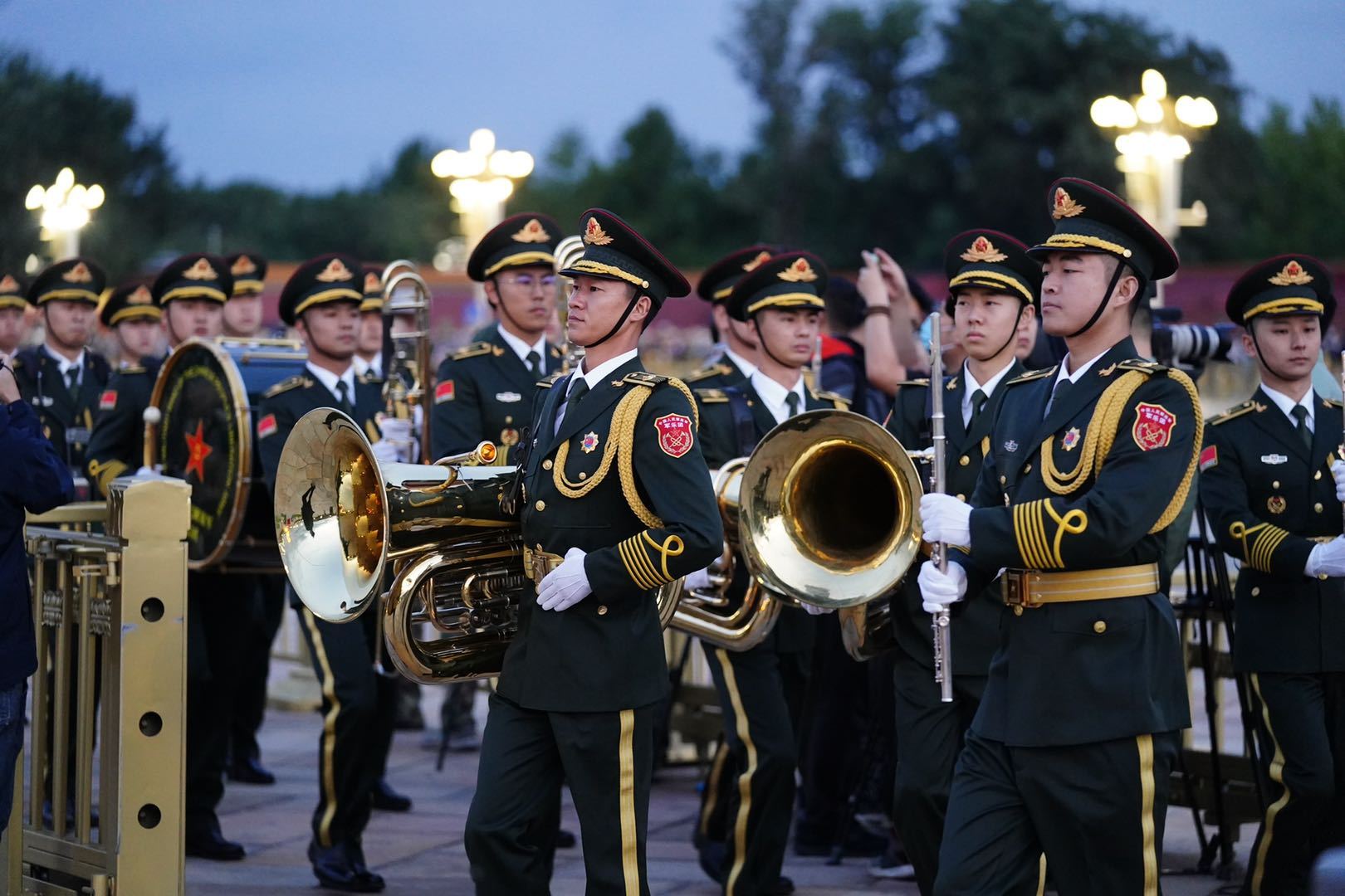 6点整,军乐团在旗杆周边就位。6时06分,城楼吹响升旗号角,升国旗仪式正式开始!观众们把手机、相机纷纷对准远处的城楼,将这激动人心的一刻记录下来。