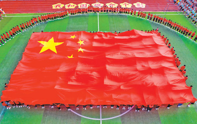 原标题:鲜亮“中国红” 激扬爱国情(祖国颂·同升一面旗)