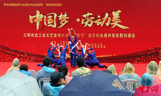 中工网讯 12月16日,福建省三明市总工会文艺宣传小分队走进三明高新技术产业开发区申通物流园开展“两节”送温暖活动,为园区新就业形态劳动者送去一场精彩纷呈的视听盛宴。