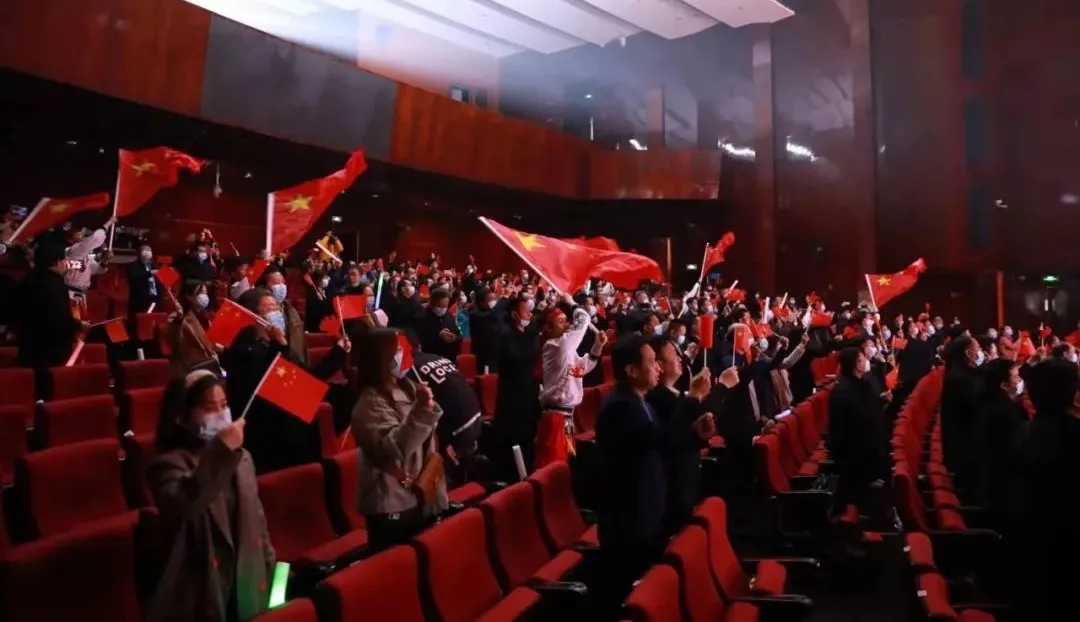 最后,全体展演人员与台下观众挥动国旗,全场齐唱《歌唱祖国》,展示活动圆满落下帷幕。